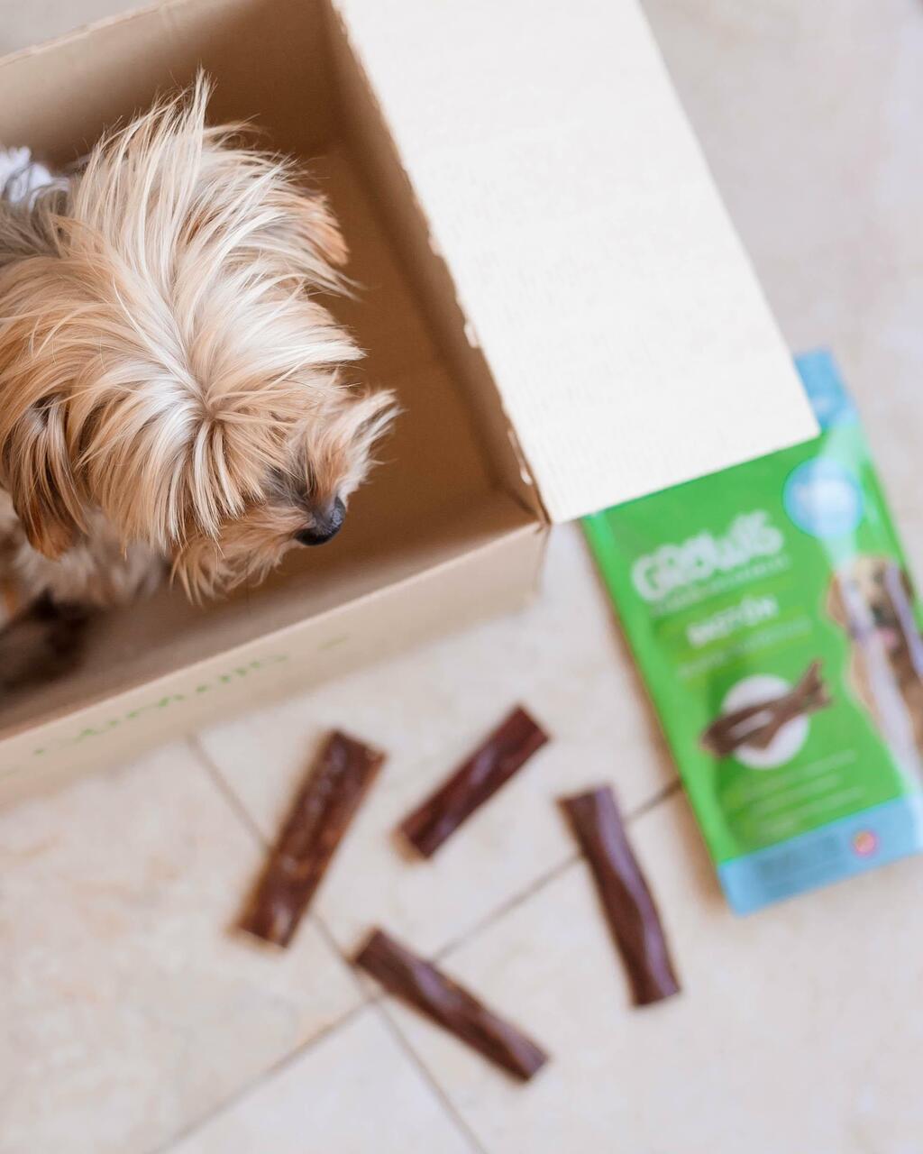 Cuidá la salud bucal de tu mascota de forma 100% natural con los snacks dentales Growis. Esta bolsita contiene varios bastoncitos crocantes de esófago bovino, diseñados para limpiar dientes, fortalecer encías y reducir el sarro mientras tu perro o gato disfruta de un premio irresistible.