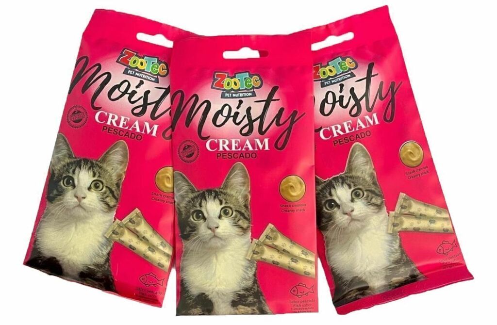 Sorprendé a tu felino con Moisty Cream de Zootec, un snack cremoso con sabor a pescado que no solo lo conquista por su sabor, sino que también fortalece el vínculo entre ustedes. Ideal para ofrecer como premio o como complemento alimenticio, su textura suave y sabrosa lo hace irresistible.